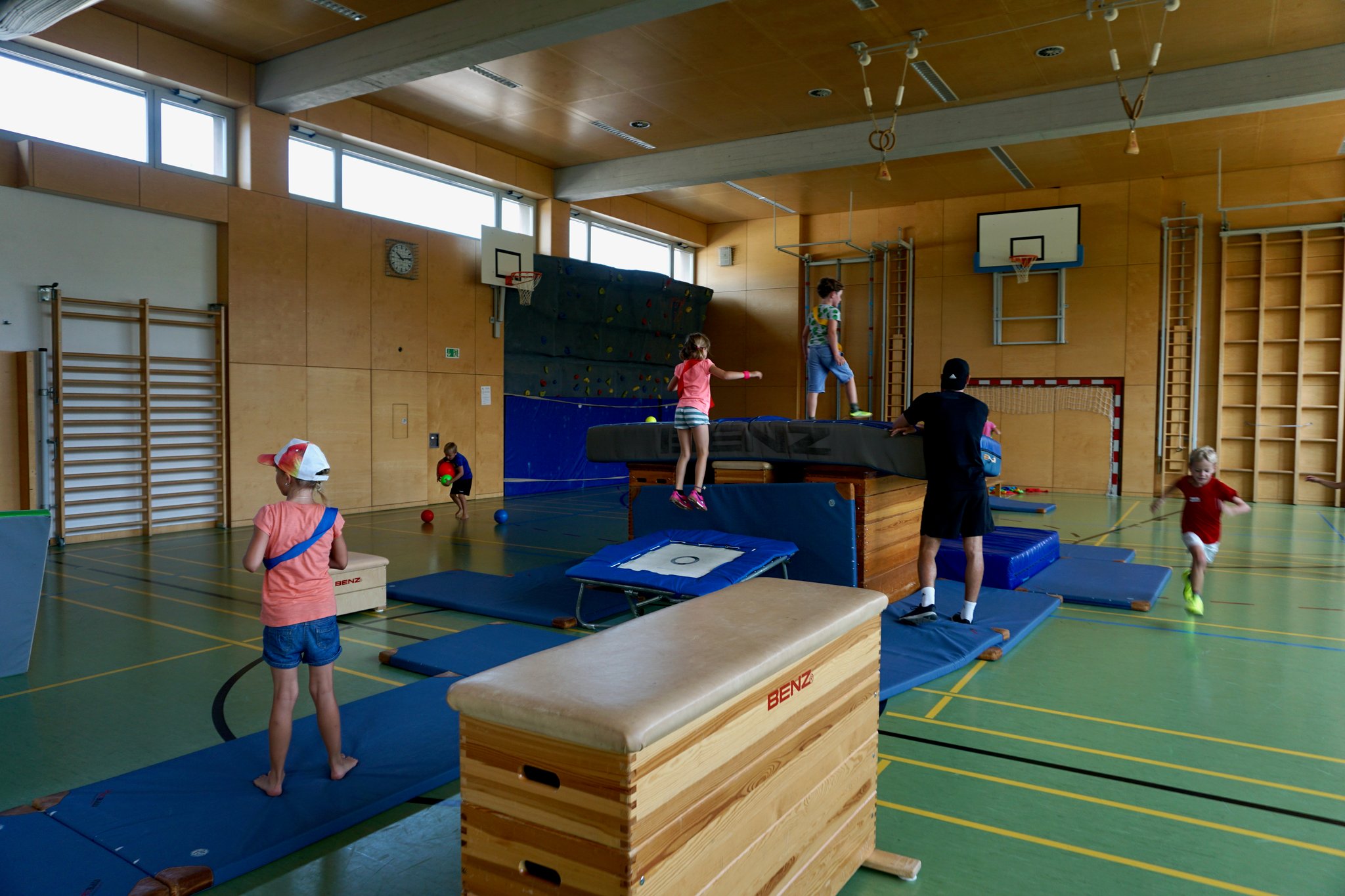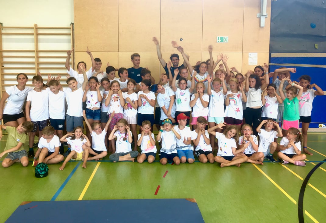 Obwohl wir in diesem Jahr aufgrund der Gymnaestrada eine Woche später in unser Camp in Klaus starteten, waren trotzdem wieder rund 60 Kinder dabei. Wie auch schon im Vorjahr verbrachten wir zusammen eine aufregende Woche in der Spiel, Sport und Spaß immer im Vordergrund stand. Die Klauser Kinder füllten das Camp mit Leben und viel Freude und für uns als Team, war es eine spannende und kurzweilige Woche, auf die wir sehr gerne zurückblicken! Auch dieses Jahr haben wir für euch ein paar Fotos zusammengesucht, damit auch eure Eltern, Geschwister und Freunde erfahren, wie es bei uns so ist. Viel Spaß beim Durchschauen und wir freuen uns schon wieder aufs nächste Mal.